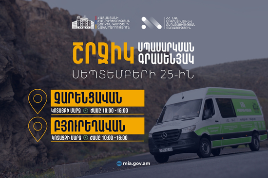 Սեպտեմբերի 25-ին շրջիկ սպասարկման գրասենյակները կլինեն նաև Կոտայքի մարզի Նոր Հաճըն և Գեղարքունիքի մարզի Վարդենիս համայնքապետարանների հարևանությամբ՝ սեպտեմբերի 18-ին ընդունված դիմումների շրջանակներում փաստաթղթերը հանձնելու նպատակով։